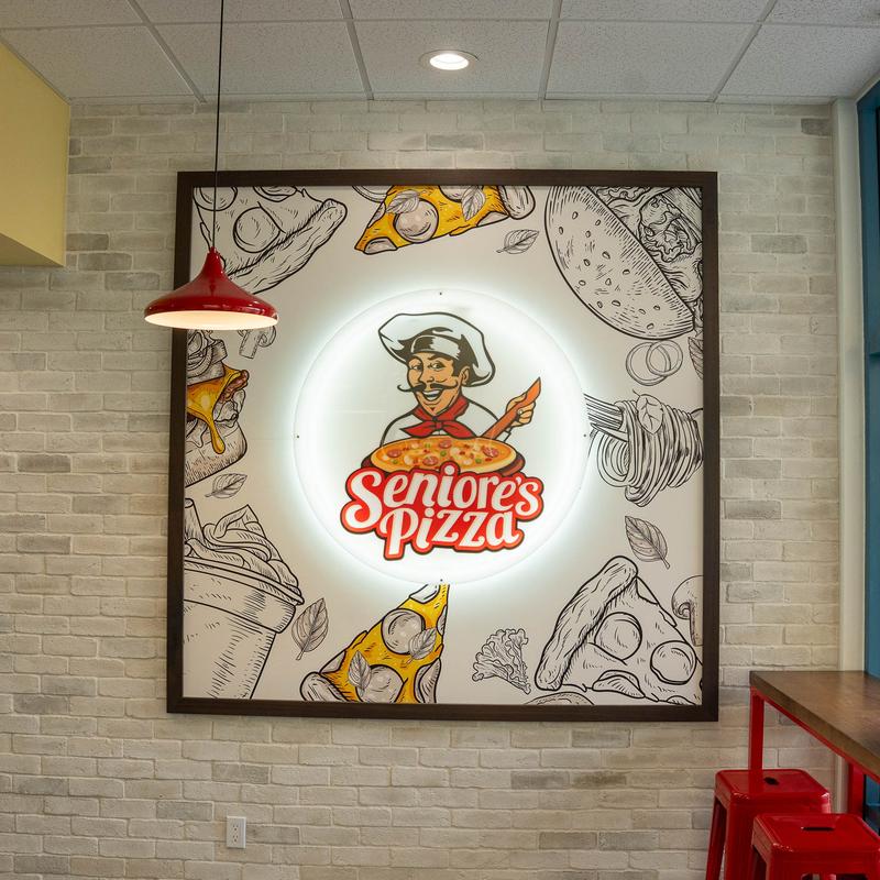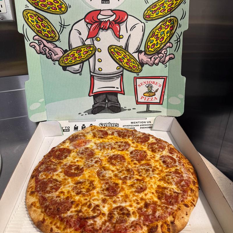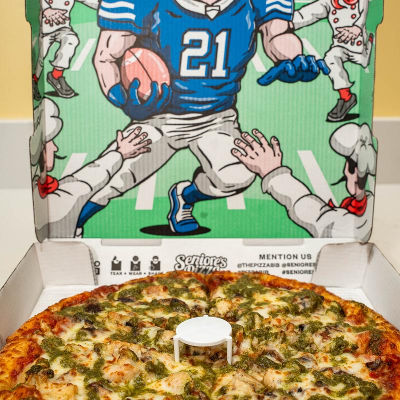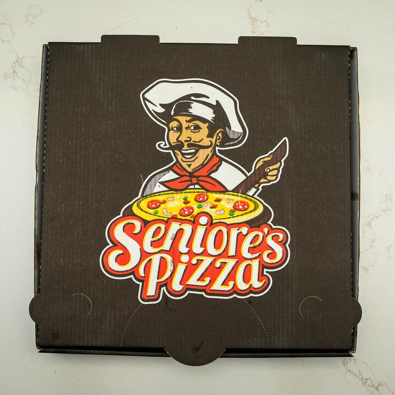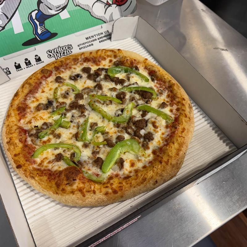 Enjoy the full Seniore's Pizza menu from the comfort of home. Choose from our signature pizzas like the Greek Special or Four Cheese, starters like mozzarella sticks, chicken wings in a variety of flavors, juicy burgers, hot sandwiches, and tempting desserts like deep-fried Oreos. Order from any of our convenient locations and select the one nearest you for quick service.