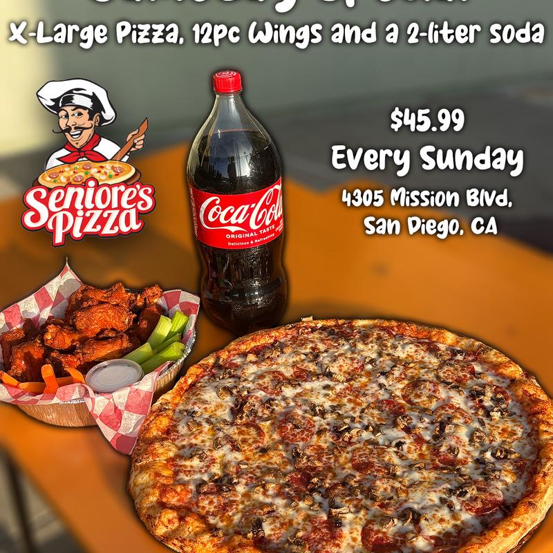 Make your next event distinctive with our catering! Seniore's Pizza menu features delicious pizzas, fresh salads, savory pastas, appetizers, sandwiches, burgers, chicken wings, and desserts. Perfect for birthdays, family reunions, or weddings, we'll bring exciting food options and top-notch service to any occasion. Contact us today to customize your catering order.